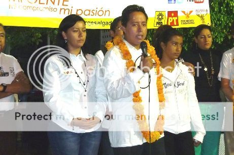 Acompañado de su esposa Alejandra Marroquín Sánchez, el candidato a diputado federal del séptimo distrito por el PRD, Jorge Salgado Parra, fue recibido anoche después de las 21 horas en el fraccionamiento «Meléndez», que en ese lugar ya tenían a un gobernador, en referencia a su vecino Angel Heladio Aguirre Rivero y ahora les pidió su voto para que tenga a un diputado federal. (Fotos: Domingo Francisco Reyes).