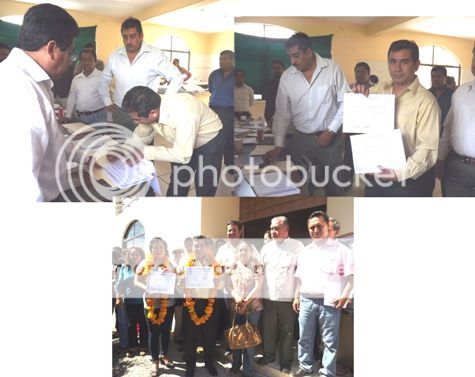Luego de que las autoridades electorales del distrito 19 declararan validos los resultados de las elecciones del domingo, el presiente del Consejo Distrital, Reginaldo Sánchez Lucas, entregó la constancia de mayoría como presidente municipal electo de Eduardo Neri al priísta Ignacio Basilio García, quien posteriormente lo festejó con todos sus seguidores.