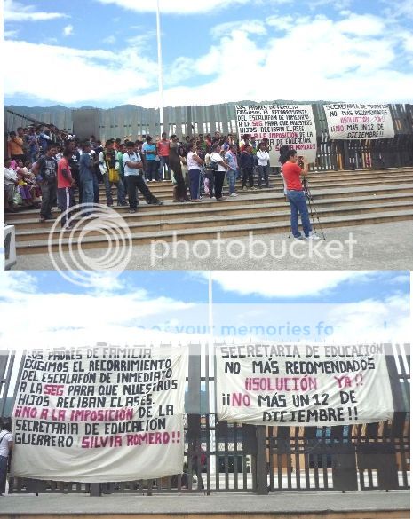 Alumnos de primer ingreso, acompañados de padres de familia de la escuela Normal Rural de Ayotzinapa «Raúl Isidro Burgos», a las 11:40 horas de la mañana se plantaron en la puerta del palacio de gobierno para pedir de que se les entregue las 140 matrículas, ya que Silvia Romero Suarez, secretaria de Educación Guerrero les quiere quitar 8 matriculas para dárselas a los alumnos que fueron rechazados y así poder formar un extramuro y anunciaron que si no les dan solución permanecerán por tiempo indefinido. (Fotos: Domingo Francisco Reyes).