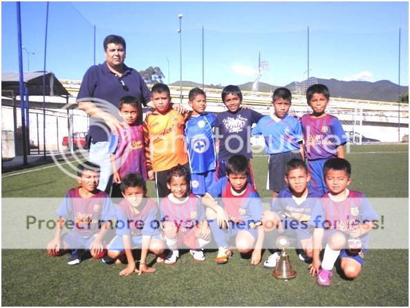 El equipo Barcelona poni «B» que lo integran los niños Nahu, César, Cristian, Angel, Alexander, Uriel, José Angel Francisco Roque, entre otros la tarde de ayer se coronó con 6 goles derrotando al equipo «Galácticos» con 2 goles, ya que se jug un cuadrangular en donde su director técnico Fernando García Berruecos los felicitó (Foto: Magdalena Roque Cesáreo).