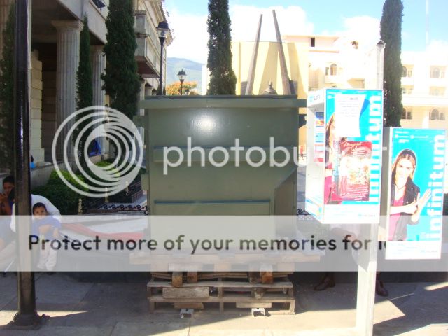 En la gráfica número 3 se observa un armastote que semeja una planta de luz y que está mal colocada sobre unos barrotes, localizada al pie del edificio municipal, ¿por qué llevar riesgos a la plaza central?
