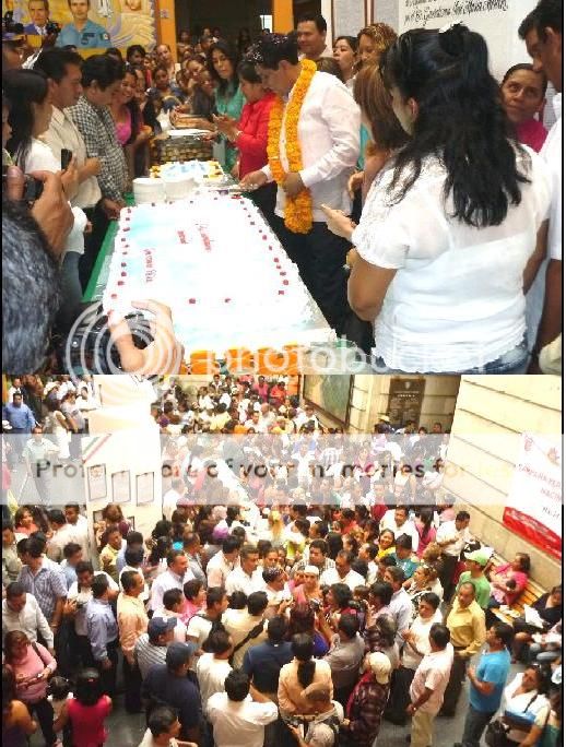 Infinidad de personas, provenientes de colonias de la periferia de Chilpancingo, llegaron hasta la planta baja del ayuntamiento capitalino para felicitar al presidente municipal priísta, Mario Moreno Arcos, ya que este día está cumpliendo un año más de vida, ofreciéndole un mega pastel que fue departido a todos los asistentes. (Fotos: Domingo Francisco Reyes)