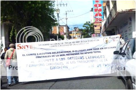 La calle de Juan Ruiz de Alarcón fue cerrada por los trabajadores de la Delegación D-III –(16) 07) demandan a las autoridades educativas de Guerrero respeto a los derechos laborales y conquistas sindicales de los trabajadores de la educación.
