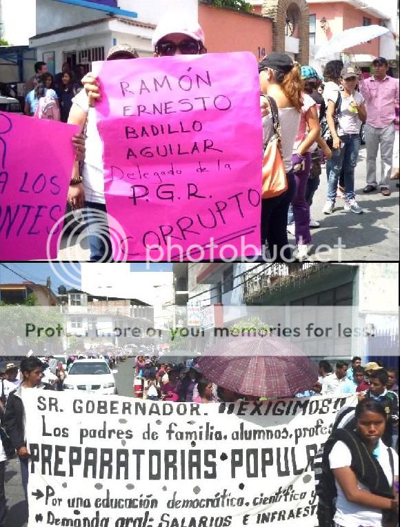 El delegado de la Procuraduría General de la República (PGR),Ramón Ernesto Badillo Aguilar, no respeta a los comerciantes de Chilpancingo, los trata como delincuentes, se escuchó el reclamo la tarde de hoy lunes al marchar diversas organizaciones que concluyeron en las afueras del Palacio de Gobierno, luego de que el viernes y sábado detuviera a mercaderes y detuvieran a normalistas por la Policía Federal, respectivamente, además exigieron al gobierno aguirrista construcción de escuelas preparatorias populares.