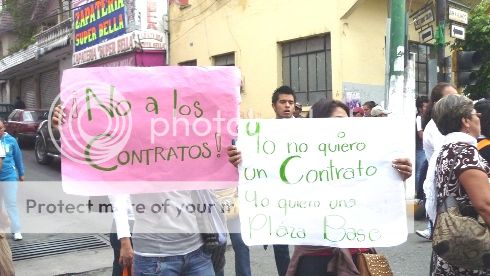Sin declaraciones a la prensa, solamente con sus pancartas daba a conocer los normalistas su inconformidad la tarde de hoy lunes.