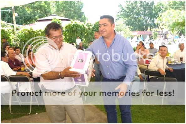 Víctor Wences Martínez, muy sonriente recibió un regalo de parte del regidor, Carlos Leyva Acevedo.