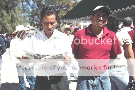 En La Montaña tenemos que estar luchando en contra de muchas adversidades tanto políticas como de inseguridad, pero nos mantenemos firmes y favoreciendo el trabajo del Partido Revolucionario Institucional (PRI), indicó el presidente del Comité Directivo municipal de Tlacoapa, Sabás Martínez Martínez (quien lee este periódico vespertino) y su correligionario Gregorio Vicario Mejía. (Foto: José Víctor Aponte Alcaraz).