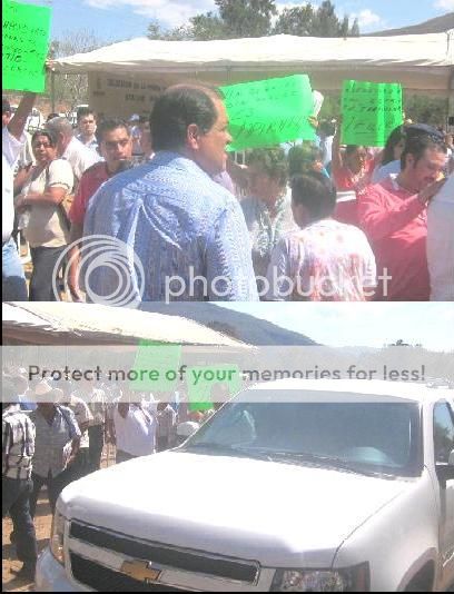 Con protestas a través de pancartas, un grupo de transportistas encabezados por su dirigente Arturo Ramírez, le exigieron al gobernador la salida de «piratas» que están trabajando sin permiso, ni placas, pero puso oídos sordos, simplemente los ignoró y se fue a bordo de su lujosa camioneta blindada. (Fotos: Bonifacio Tejacal Coctecón).